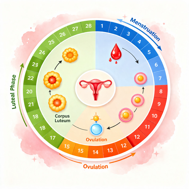 - Luteal Phase (दिन 15-28): प्रोजेस्टेरोन बढ़ता है → थकान, चिड़चिड़ापन, उदासी हो सकती है